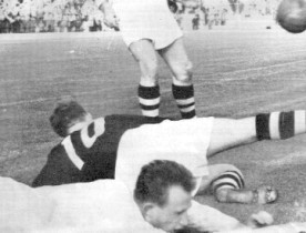 1960. MFF-spelaren är Ingvar Svahn. Matchen slutade 0-0."