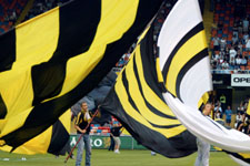 klass för sig. Med över 11.000 flaggor skapades en pulserande gul stjärna på Råsundas nedre norra läktare. Den övre