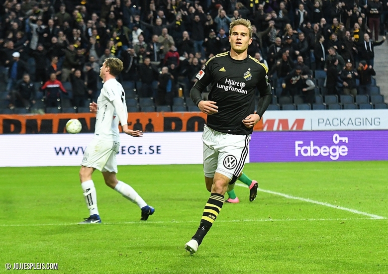 Till slut skulle det också resultera i mål. Ett spikrakt anfall från inkast nästan nere vid egen hörnflagga nickades först fram av Johan Blomberg till Simon Thern, som på ett tillslag bara skyfflade iväg bollen i djupled för Markkanen som löpte ifrån sin försvarare, tog emot bollen väl och prickade in 1-0 lågt vid sidan om Joshua Wicks. Ett vid det laget ganska rättvist ledningsmål för AIK. Mot slutet av halvleken hade man ett par hyfsade möjligheter att utöka ledningen, men kom aldrig riktigt nära, resultatet stod sig.
